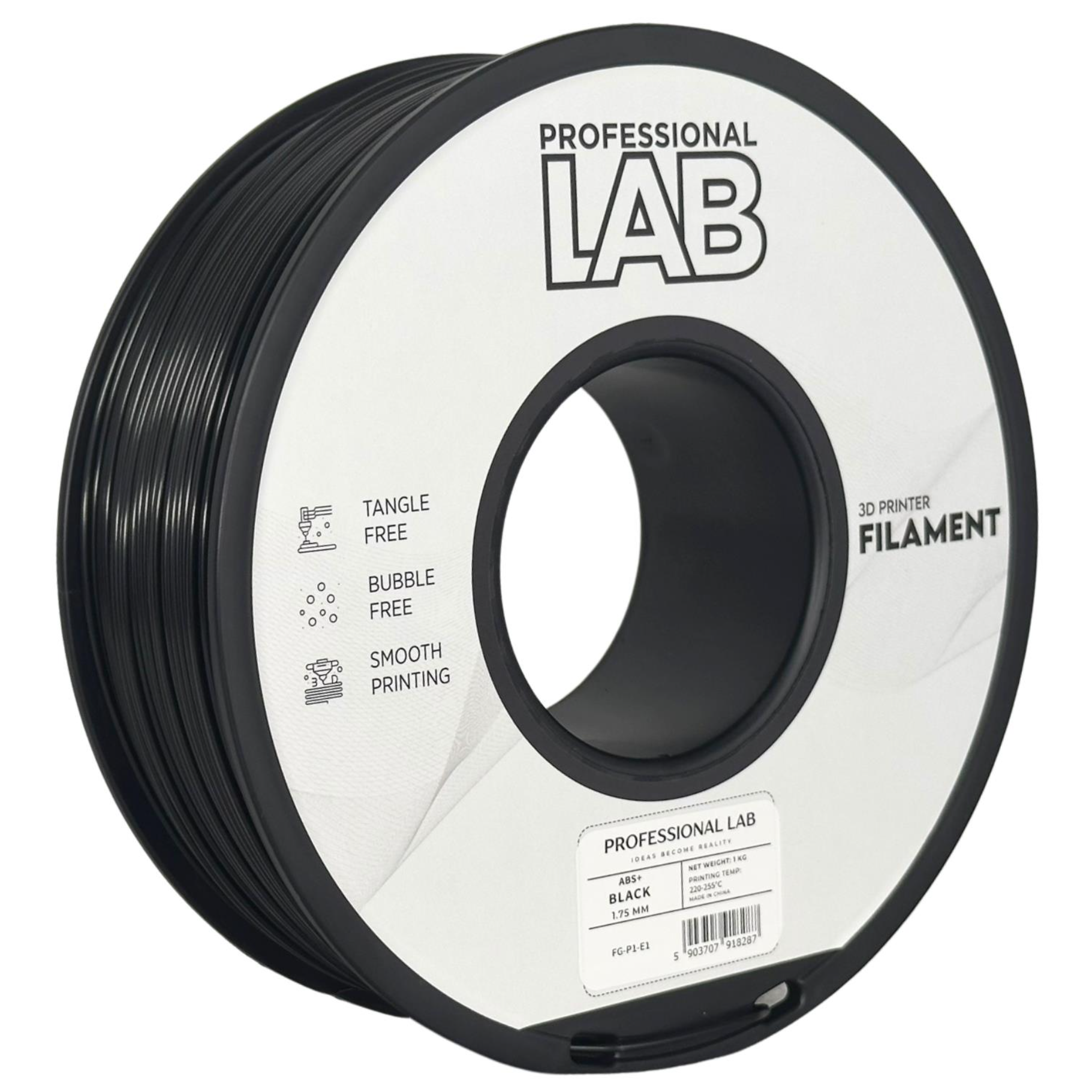 ABS yra tvirtas ir smūgiams atsparus filamentas, puikiai tinkantis funkcinių detalių ir mechaninių komponentų gamybai. Jam reikalingas šildomas stalas ir uždaras spausdinimo korpusas, kad būtų sumažintas deformavimasis, taip pat rekomenduojama naudoti gerai vėdinamoje patalpoje.